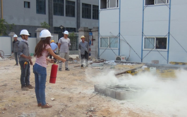 这次活动的目的是围绕活动主题、把握重点,提高全员消防意识,增强员工在紧急情况下的应变能力,活动的主要内容是日常消防安全、夏季防火等。演练前,项目经理简述了消防演习的重要意义,提出了要求并对所有参与演练人员进行现场讲解,学习有关消防知识和消防器材的使用方法,并掌握消防逃生技能及注意事项等。除检验项目部《火灾应急救援预案》的可行性外,还考验各救援组在紧急情况下的到位及时性以及在救援过程中如何确保救灾中人员和设备的安全。