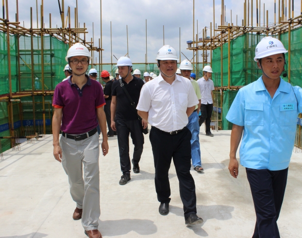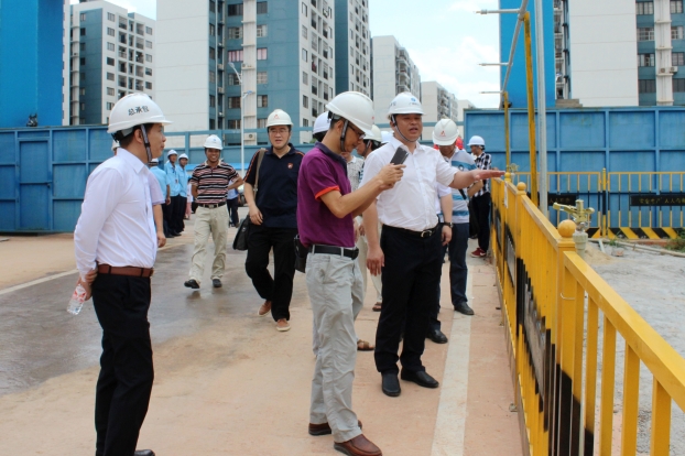 公司董事长黄深红陪同市城乡建委副主任黄赞等领导一行参观南宁阳光特殊教育学校项目施工区现场