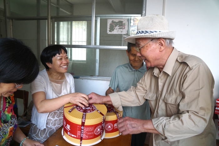 岁岁重阳,又逢重阳。10月21日,公司工会主席何汉荣率领慰问小组到敬老院、生活区看望慰问了公司在册的71位80岁以上的高龄老人,向他们致以节日的问候和祝福并为每位老人送上一份节日蛋糕。